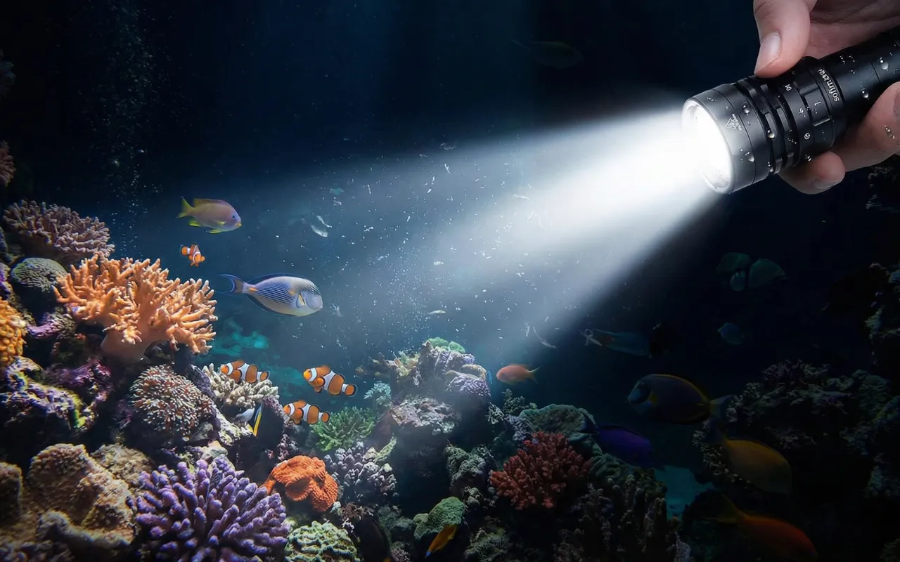 Rakastan, kuinka kirkas tämä taskulamppu on veden alla. Kalojen ja kivien huomaaminen on todella helppoa, jopa yöllä. Akun kesto riittää koko sukellusreissulleni.