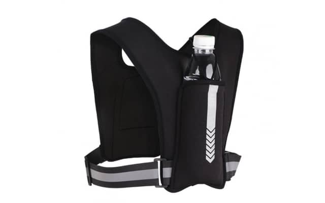 Juoksulaukun takana oleva tasku on suunniteltu vesipullolle, jotta pysyt nesteytettynä pitkien juoksujen aikana. Kiristysremmi varmistaa, että pullo pysyy paikoillaan eikä putoa edes intensiivisissä harjoituksissa.