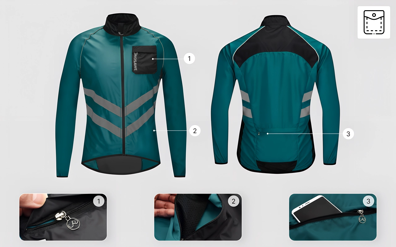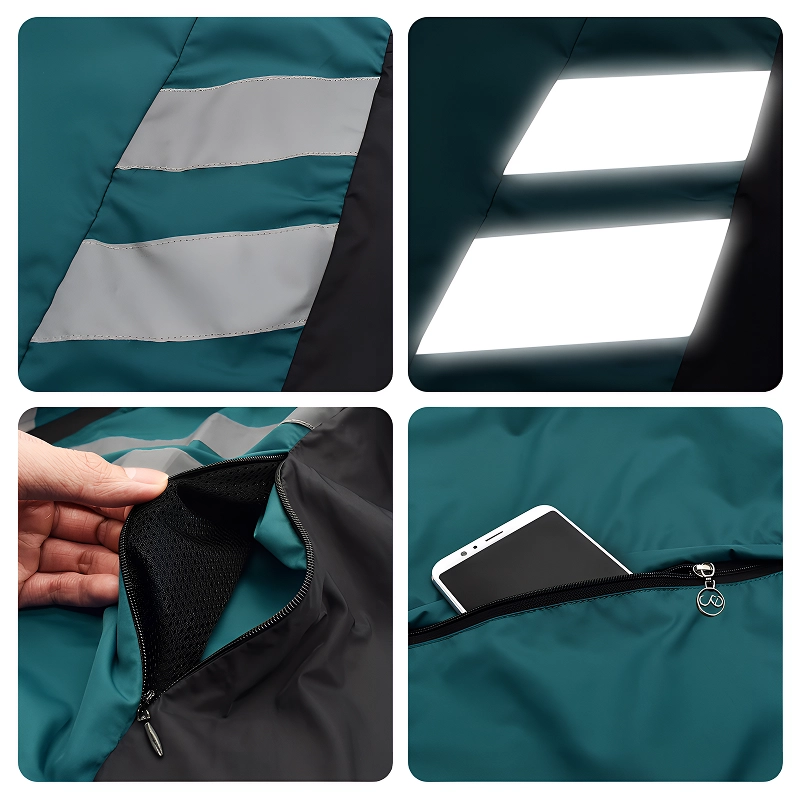 Tämä takki tekee pyöräilystä mukavaa, vaikka olisi viileää. Heijastimet saavat autot huomaamaan minut. Vetoketjut ovat erittäin laadukkaat.
