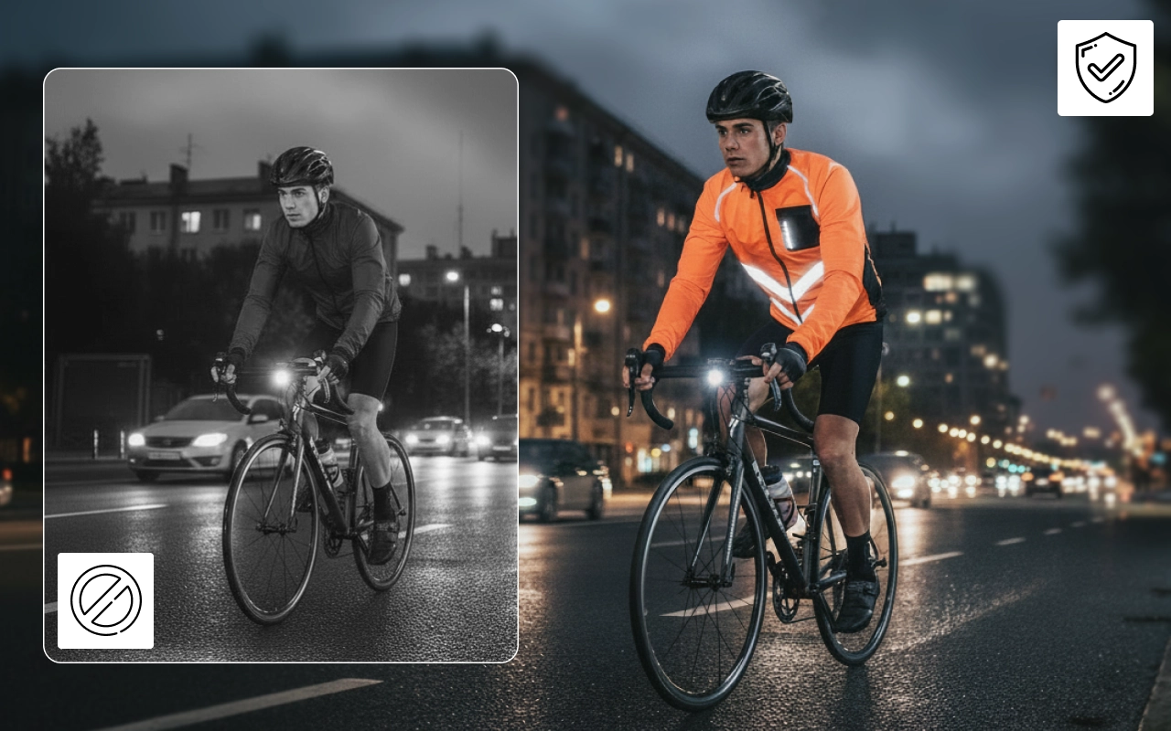Heijastavat raidat edessä ja takana näkyvät yöllä. Olet paljon helpompi huomata vilkkailla teillä hämärän jälkeen.