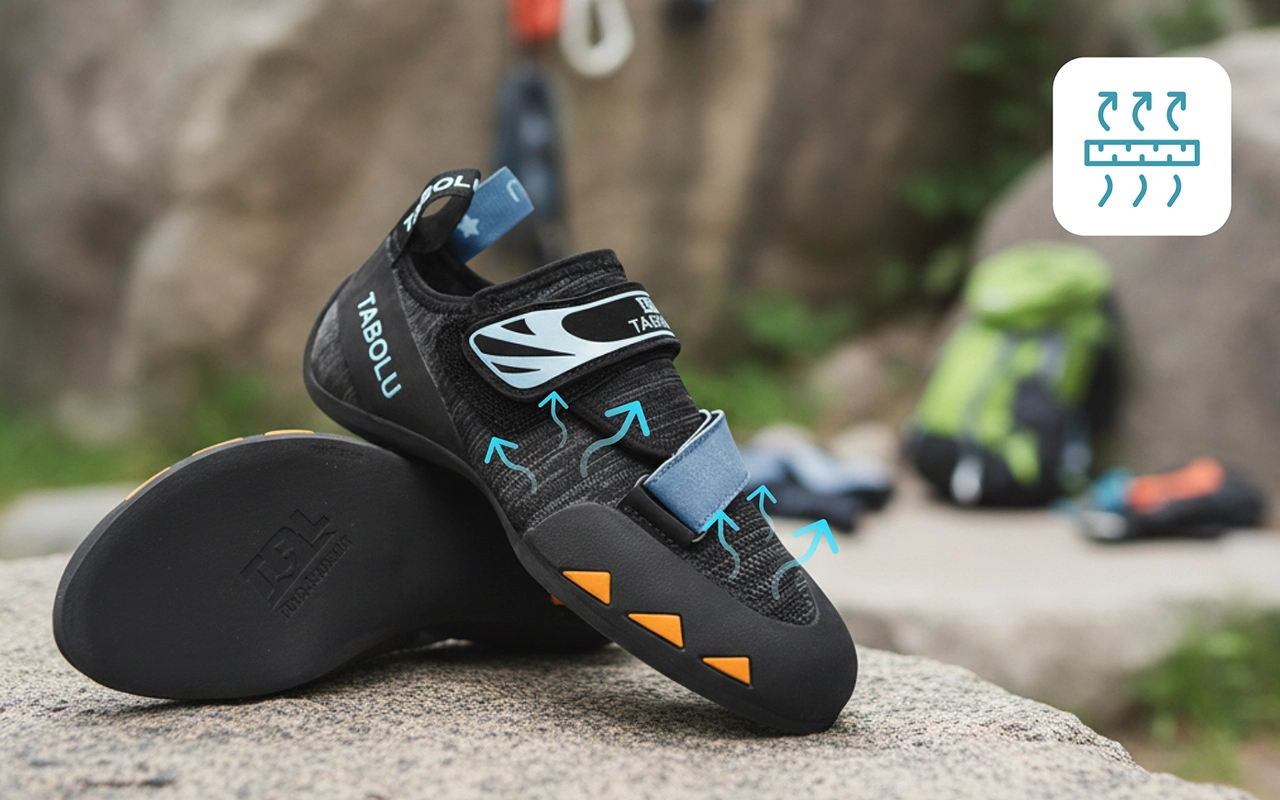 Verkkopaneelit mahdollistavat ilman vapaan kierron varpaiden ympärillä. Pysy viileänä ja mukavana myös pitkissä kiipeilyissä.