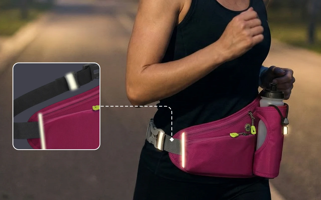 Käytän tätä vyötä iltalenkeilläni ja pidän siitä todella. Puhelin, avaimet ja juomapullo pysyvät paikallaan, ja heijastinnauhat erottuvat hyvin.