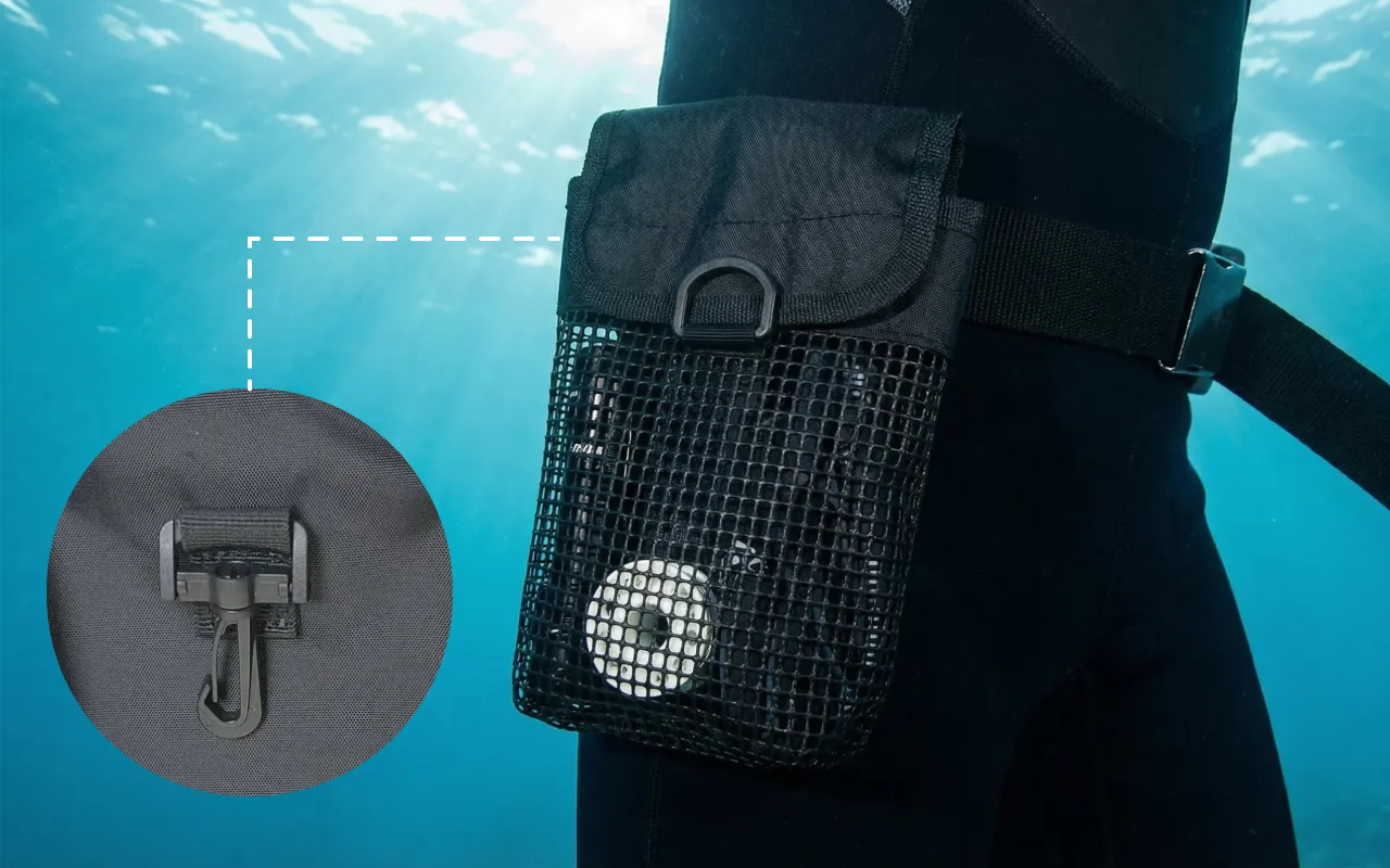 Vesi pääsee helposti ulos verkon läpi, jolloin sisältö pysyy kuivana. Sinun ei tarvitse huolehtia märistä varusteista sukelluksen jälkeen.