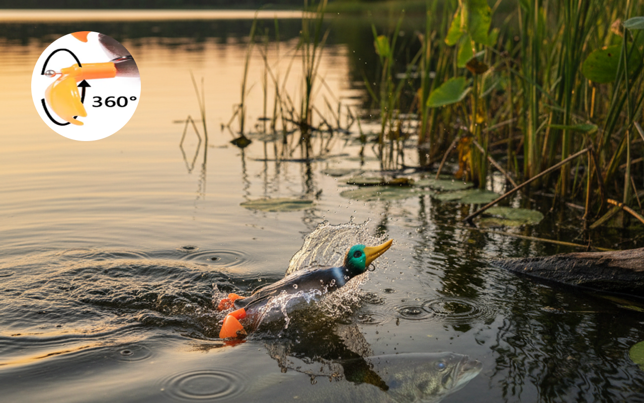 Pyörivät jalat tekevät roiskeita, jotka houkuttelevat piilossa olevat pedot. Kalat eivät voi vastustaa liikettä, mikä parantaa saalistasi nopeasti.