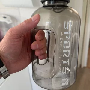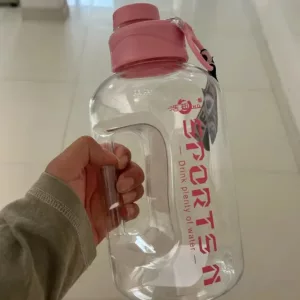 Tämä vesipullo on täydellinen kumppani päivittäisiin rutiineihini. Suuri tilavuus tarkoittaa vähemmän käyntejä vesiautomaatilla. Se on valmistettu kestävästä materiaalista ja on erittäin helppo puhdistaa. Kahva tekee siitä erittäin kätevän kantaa mukana.