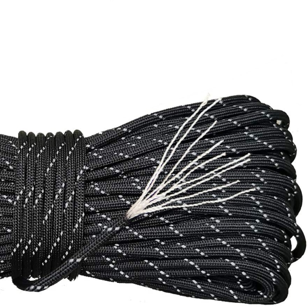 Paracordia voidaan käyttää myös monissa ulkoilmatilanteissa, kuten retkeilyssä, vaelluksessa, kalastuksessa, pelastustilanteissa, veitsen pudotuksessa, ansojen teossa, aseiden valmistuksessa ja muussa. Voit myös pakata sen selviytymispakkaukseesi. 550 paunan köysi tarjoaa hyvän tasapainon vahvuuden ja joustavuuden välillä. THREO monikäyttöinen köysi on lisäksi kosteuden-, auringonvalon/UV-säteilyn, kemikaalien ja kulutuksen kestävä. Köyden pinnassa on heijastavaa silkkiä, joka erottuu hyvin hämärässä valossa. Täydellinen valinta, kun tarvitset köyttä yöllä tai hätätilanteissa.