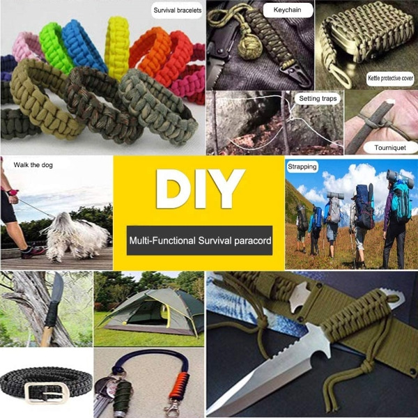 ✔️ MONIPUOLINEN KÄYTTÖ — Paracordilla on lukuisia käytännöllisiä taktisia ja sotilaallisia käyttötarkoituksia, ja teltan kiinnityksen lisäksi sitä käytetään selviytymistilanteissa, retkeilyssä, vaelluksessa, kalastuksessa sekä jopa rannekorujen ja asusteiden tekemiseen.