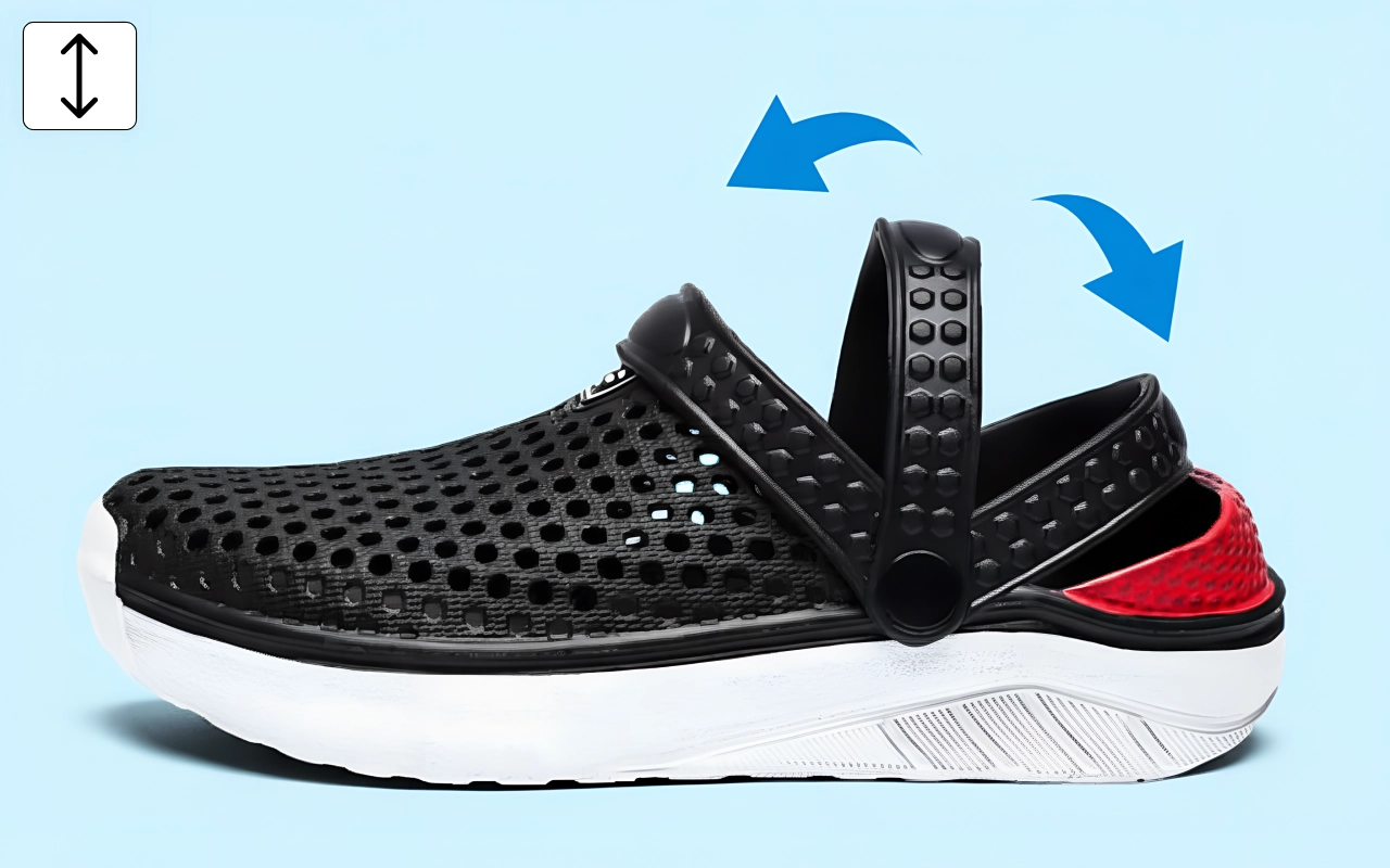 Säädettävä hihna pitää kengät hyvin jalassa liikkuessa. Ei liukastumista tai lipsumista ulkoilussa.