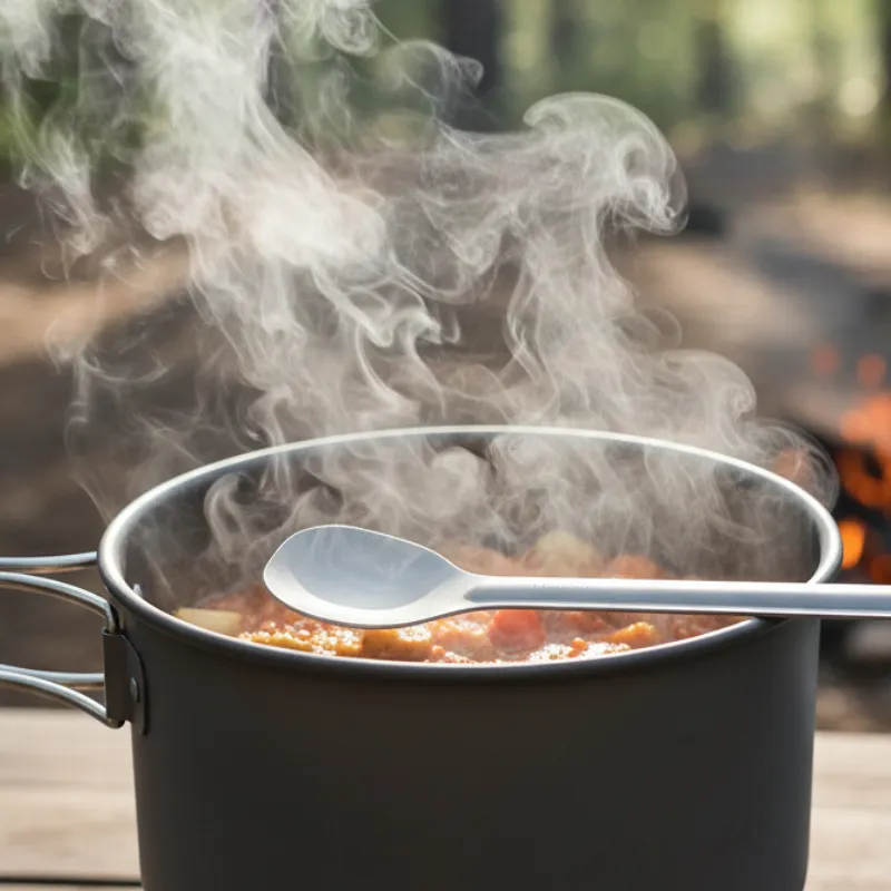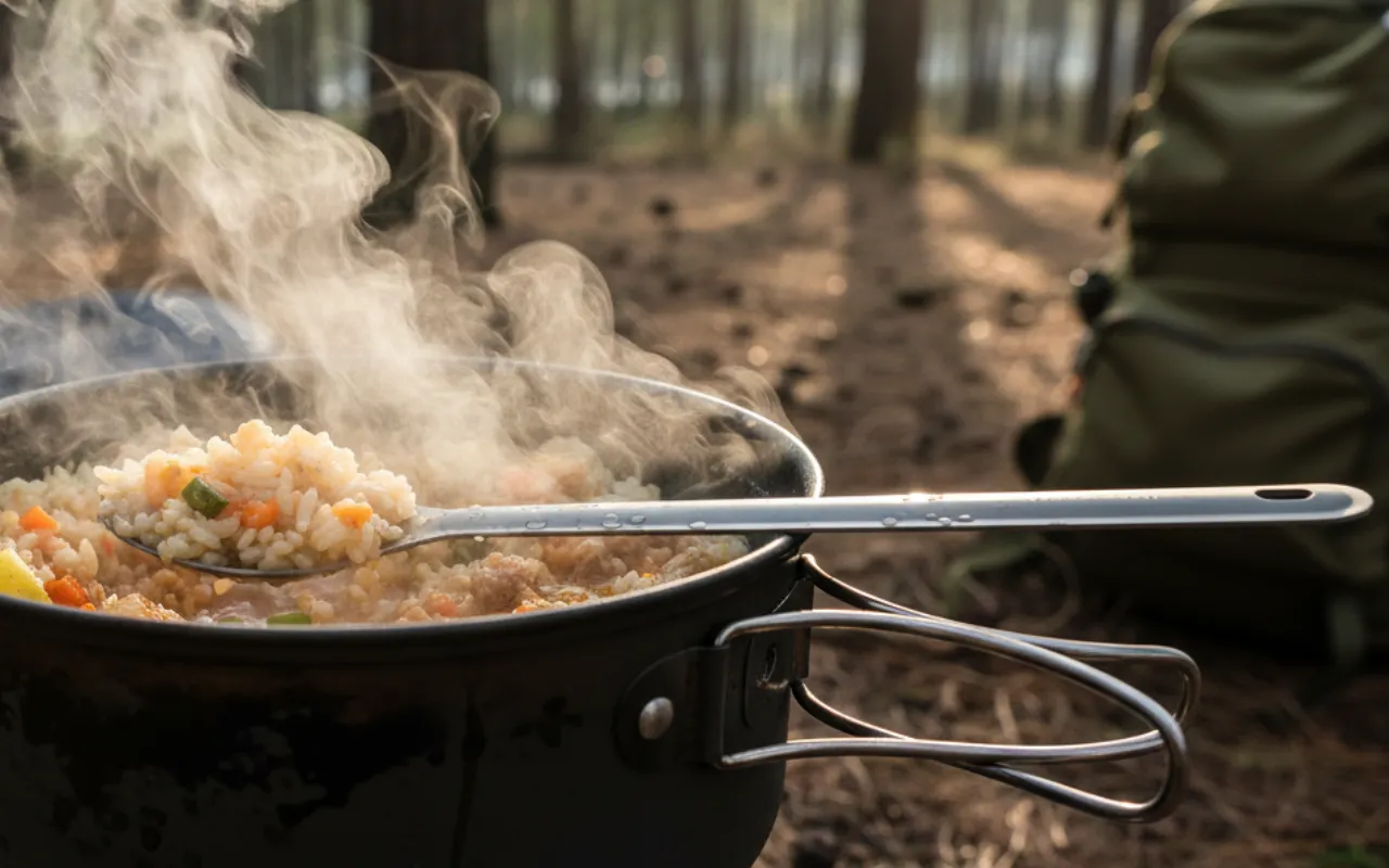 Käytän titaanista sporkiani jokaisella telttaretkellä. Todella helppo puhdistaa, eikä taivu edes kun syön kovaa ruokaa.