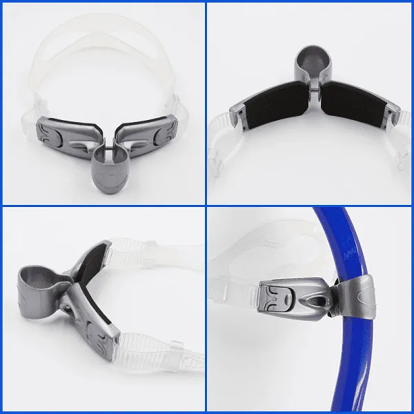 Snorkkelissamme on pehmeä, leveä päänsuoja, joka estää hihnoja painamasta otsaasi. Se istuu hellävaraisesti otsalle, auttaen välttämään päänsärkyä ja epämukavuutta jopa pitkien vedenalaisten sessioiden aikana.