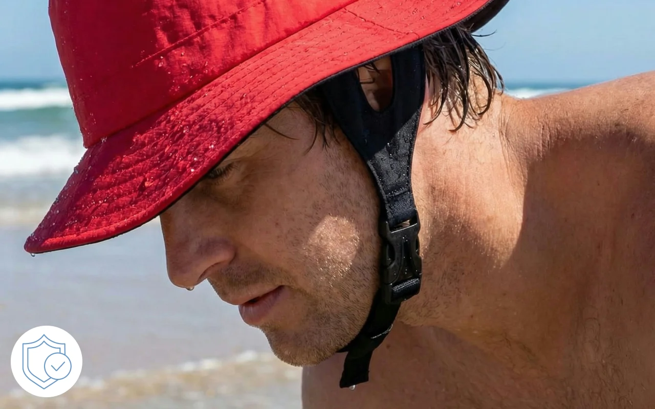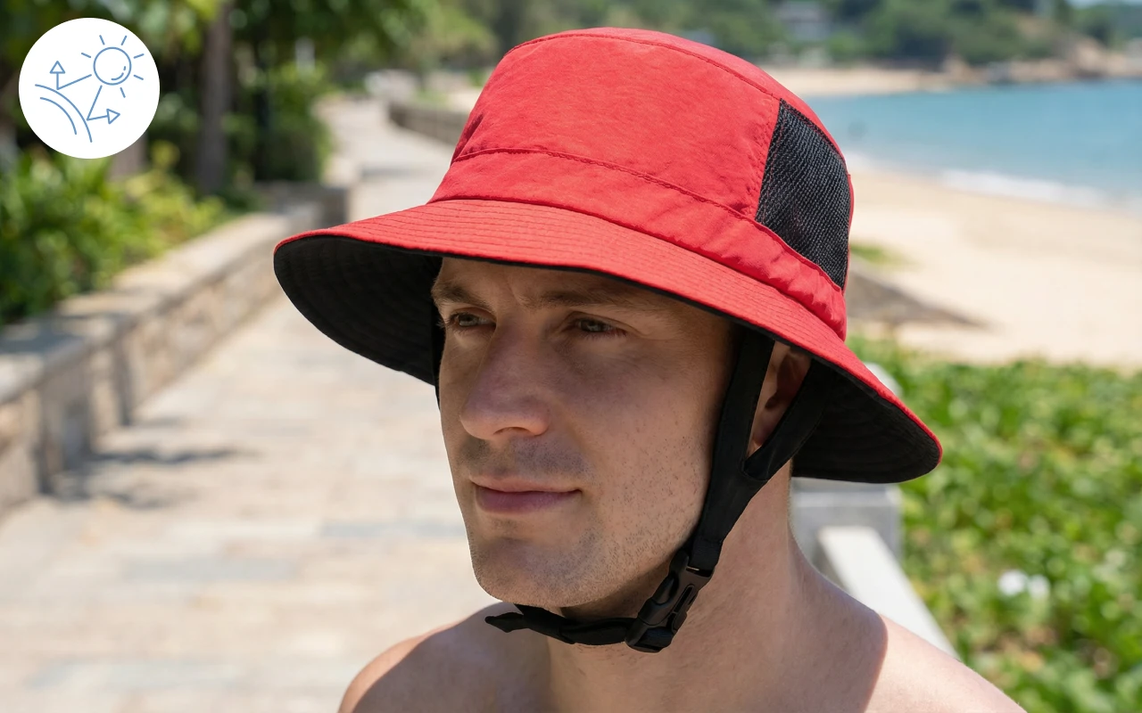 Käytän tätä kalastusreissuilla kavereiden kanssa. UPF-vuori estää niskaani ja korviani palamasta, ja säädettävä nauha pitää hatun päässä kovassakin tuulessa.