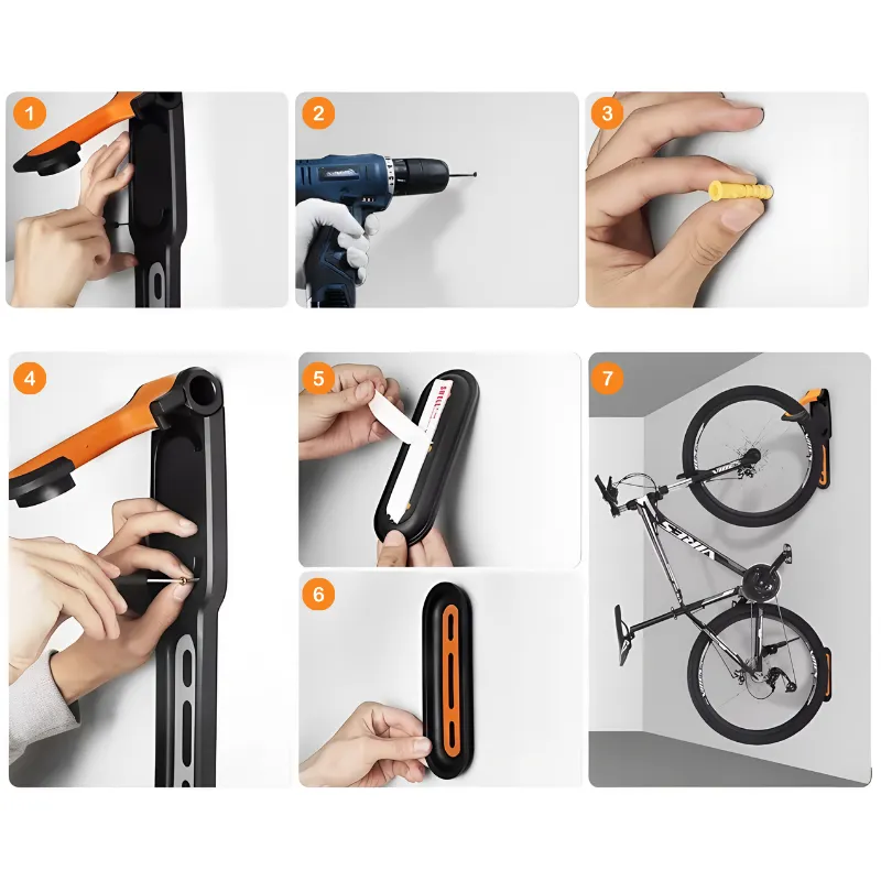 Tämä seinäkiinnitettävä pyöräteline on tehty kestämään raskaita painoja ilman taipumista. Se pysyy vakaana kaikilla pinnoilla, mikä takaa pitkäaikaisen ja turvallisen käytön.