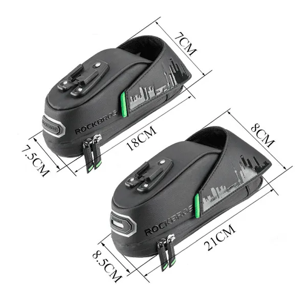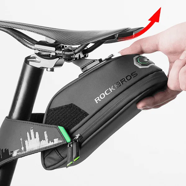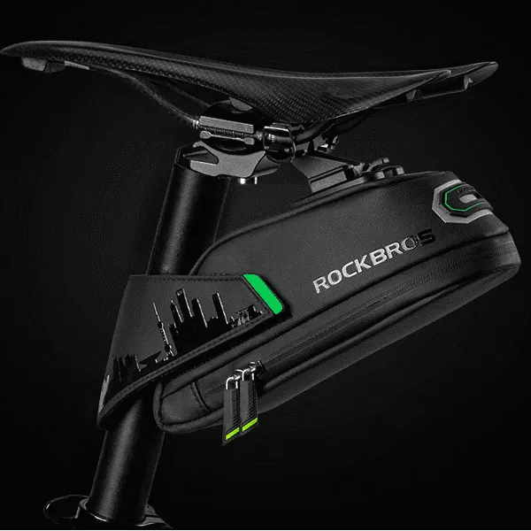 Pyörälaukussamme on kumihihna, jonka avulla voit kiinnittää valon pyörän satulaan parantaaksesi näkyvyyttä ja turvallisuutta tien päällä hämärissä olosuhteissa.