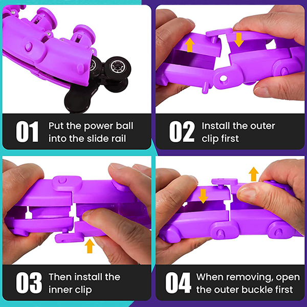 THREO Painotettu Hula-Hoop on valmistettu korkealaatuisesta ympäristöystävällisestä ABS-muovista, mikä tekee siitä kestävän. Mukana tulee painopallo, joka voidaan täyttää jauheella tai hiekalla lisäpainon saamiseksi, sekä useita solmuja. Renkaat ovat irrotettavia ja niitä voi lisätä tai vähentää vyötärön koon mukaan. Hula-hoopin käyttö on helppoa ja vaivatonta. Säädä vain solmut, aseta painopallo liukukiskoon ja aloita treeni renkaan kanssa vyötärölläsi.