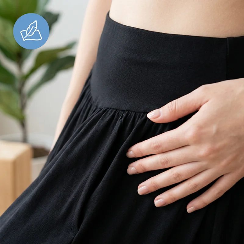 Joustava vyötärönauha mukautuu helposti kaikille vartalotyypeille. Liiku, venyttele tai tanssi vapaasti ilman kiristystä.