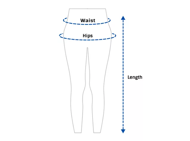 - 2. Aseta mittanauhan alku vyötärölle ja mittaa alas nilkkaan asti.