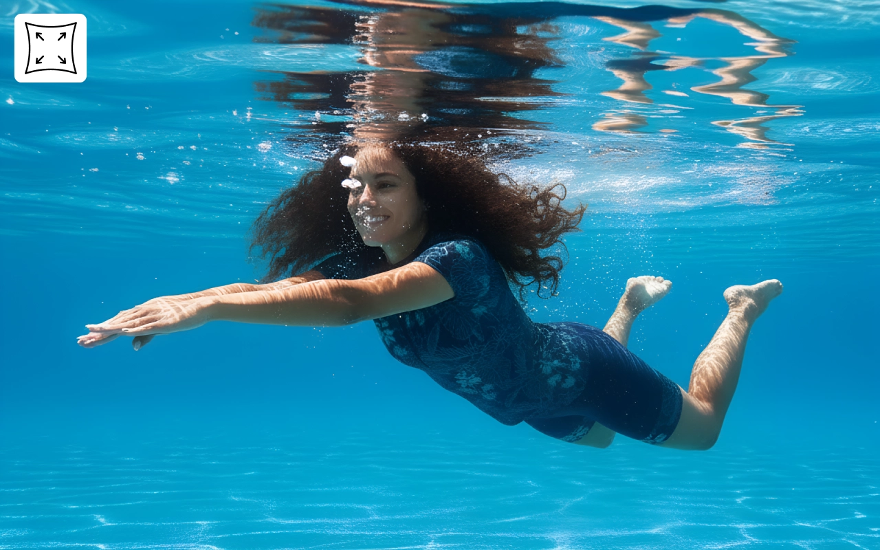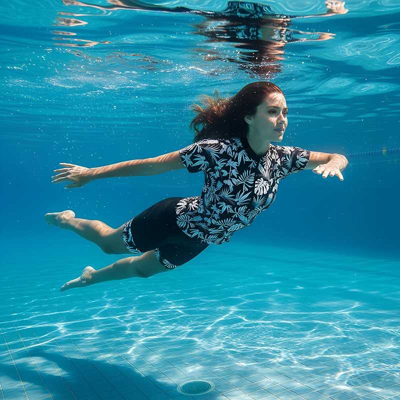 Joustava kangas antaa liikkua ja uida vaivattomasti. Voit sukeltaa tai leikkiä ilman kiristävää tai rajoittavaa tunnetta.