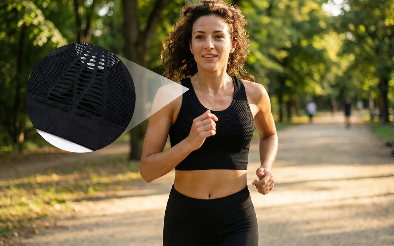 Verkkopaneelit mahdollistavat hyvän ilmanvaihdon ja estävät ylikuumenemista. Liiku vapaasti ja luottavaisesti, vaikka treenaat kovaa.