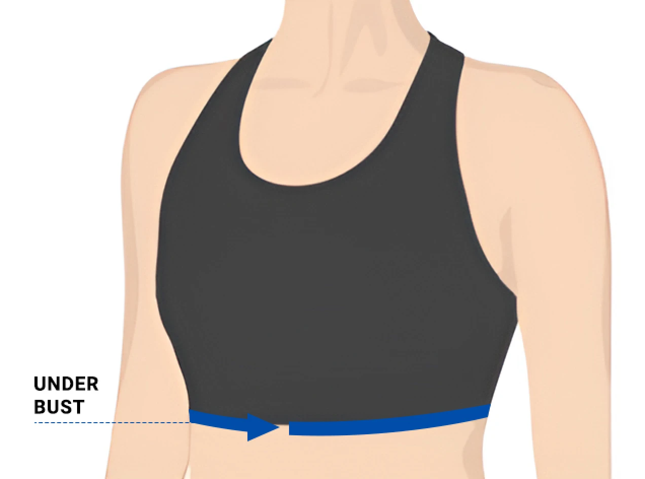 - 1. Kiedo mittanauha rintakehäsi ympäri, suoraan ja tasaisesti rinnan alta.